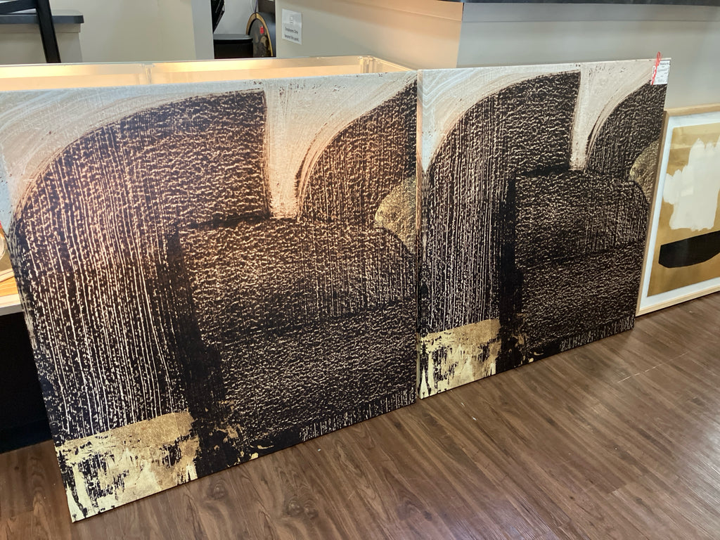 SET OF 2-CANVAS ABSTRACT PRINT ON CANVAS BROWN/TAUPE WALL ART 40X40