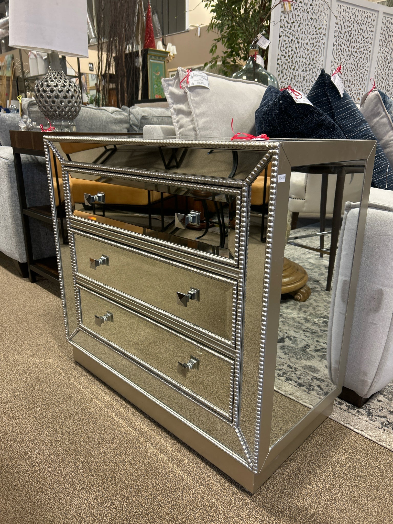 HOLLYWOOD REGENCY MIRRORED THREE DRAWER CHEST 32"W16"D 30"H