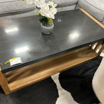 Brown Wood slat w/ Black Stone Top Coffee Table 52" x 24.5"