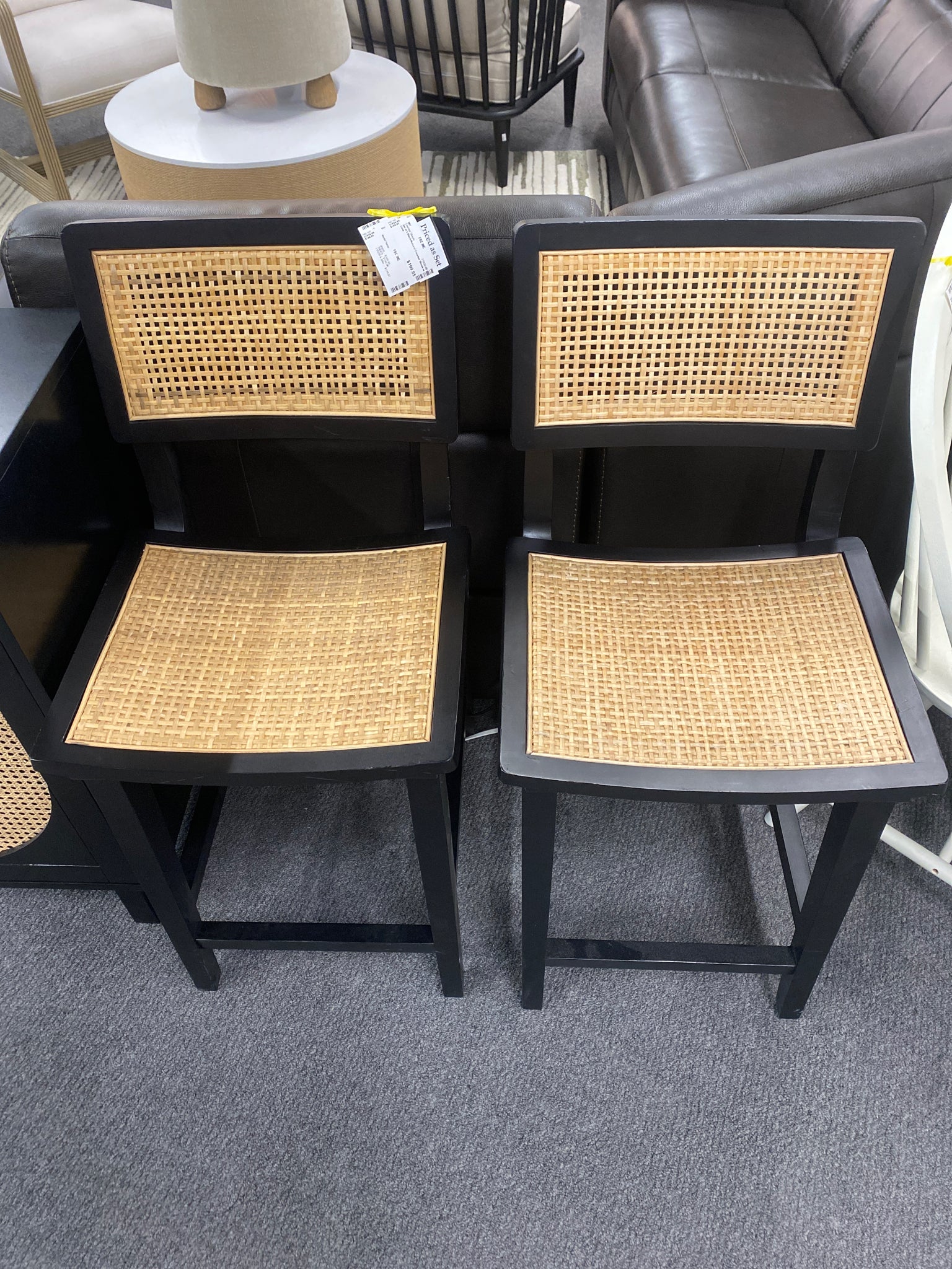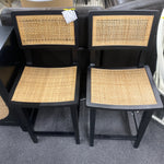 Set of 2 Black/Natural Counter Stools w Cane