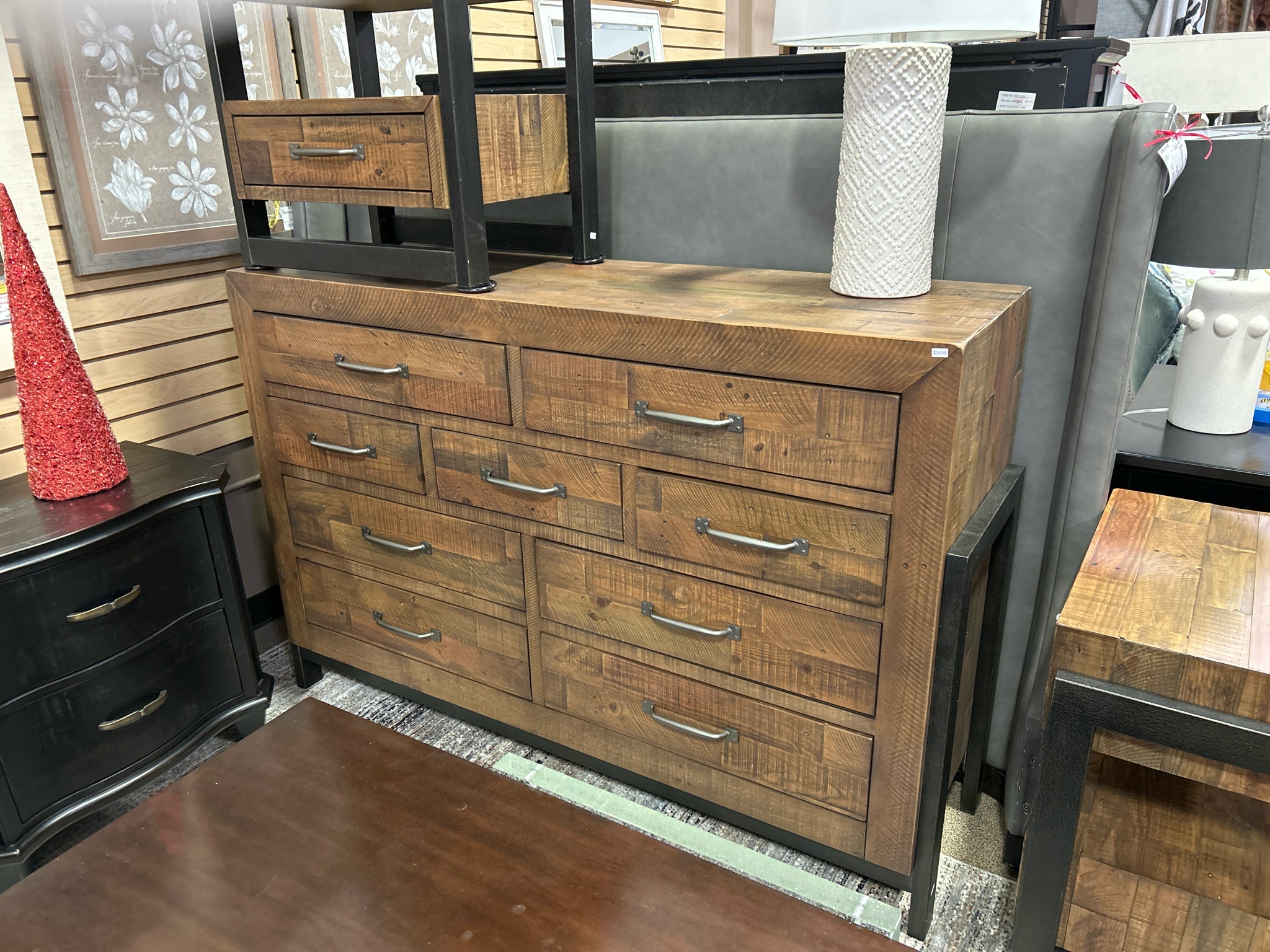 9-Drawer Rustic Wood and Metal Dresser
