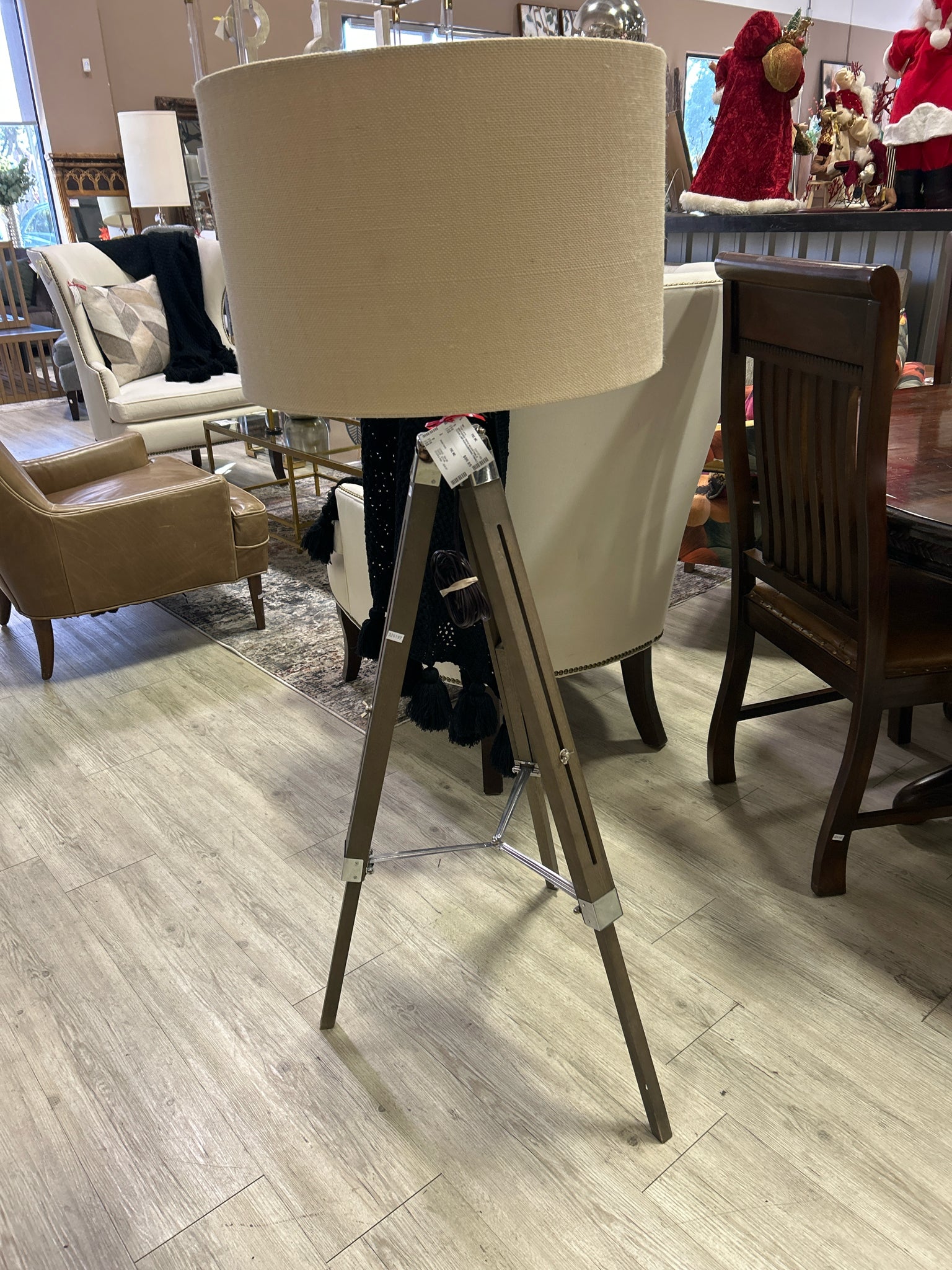 WEATHERED TRIPOD ADJUSTABLE FLOOR LAMP W/SHAD(MISSING FINAL)