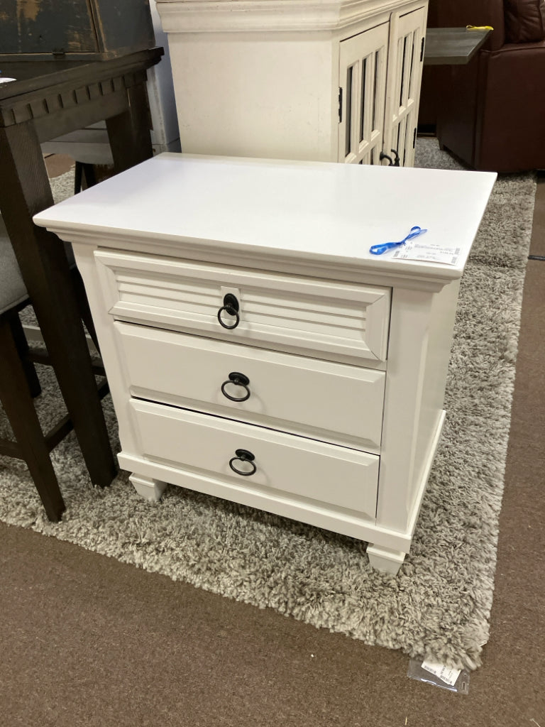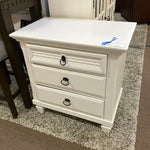 AS-IS-WILLOWDALE WHITE THREE DRAWER NIGHTSTAND 28W 17D 28H