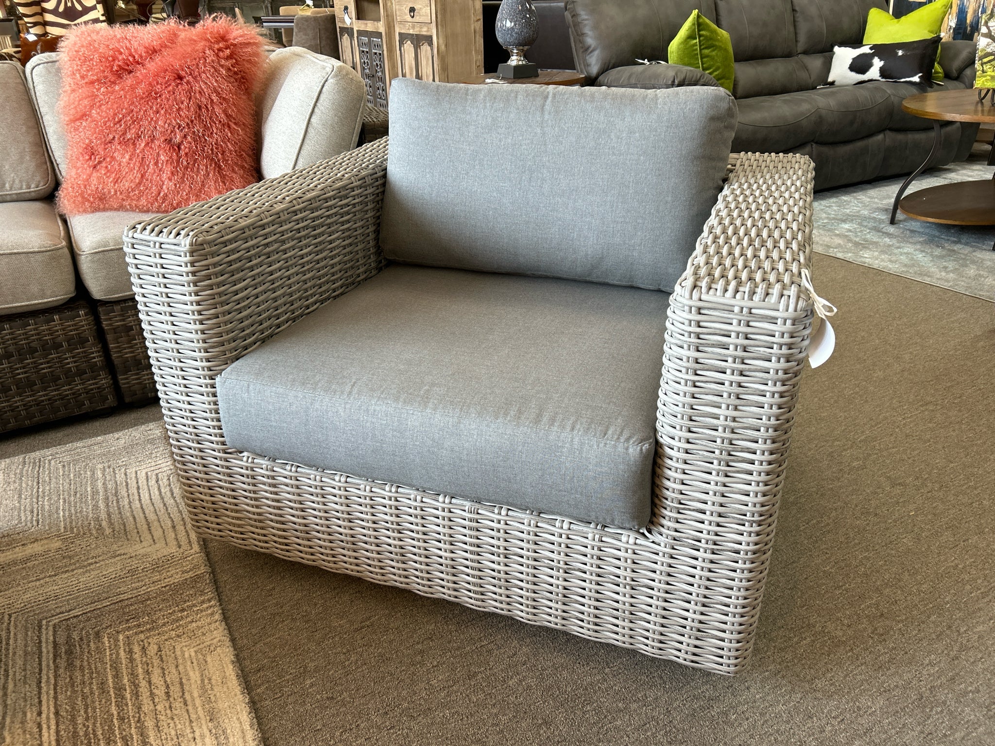 BLA600swch Outdoor Rattan Swivel Chair with Grey Cushion