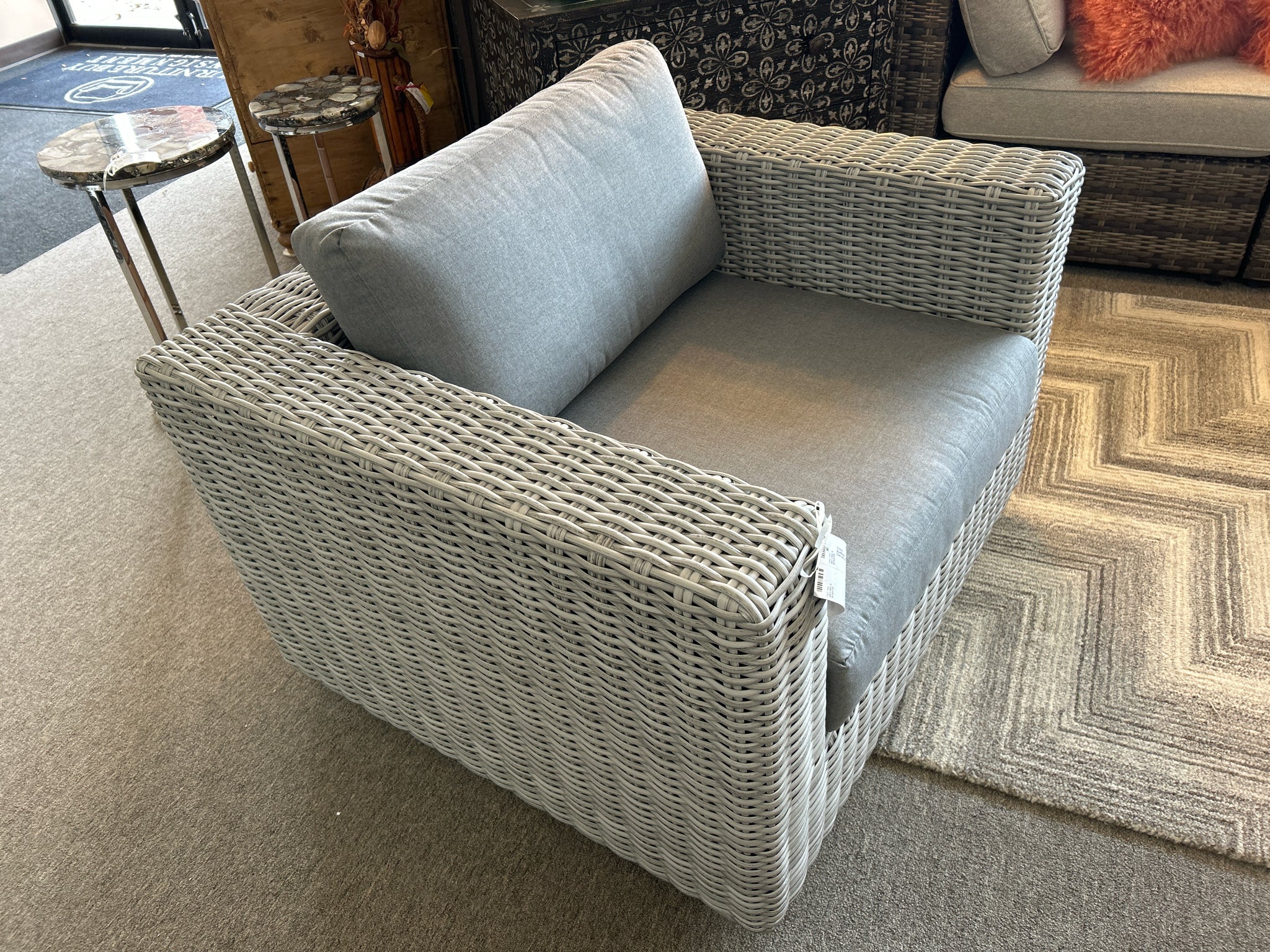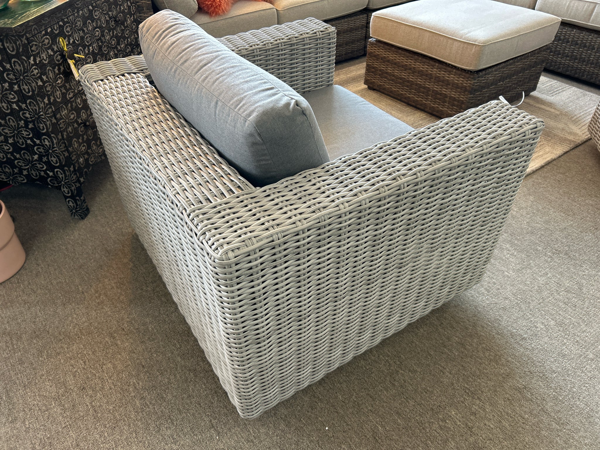 BLA600swch Outdoor Rattan Swivel Chair with Grey Cushion