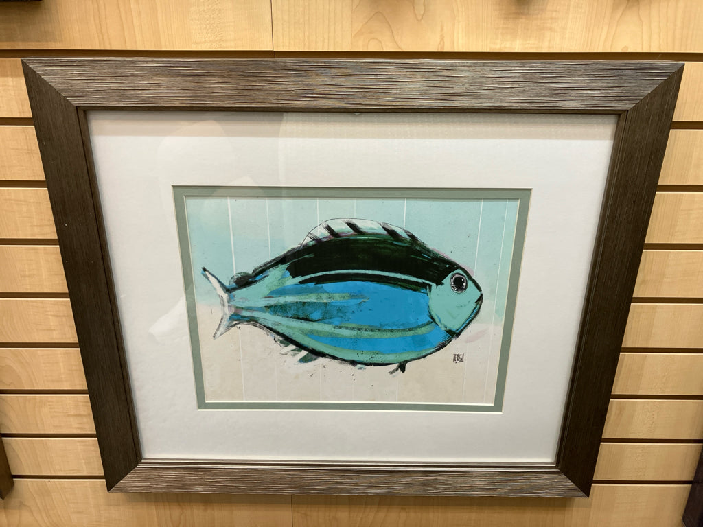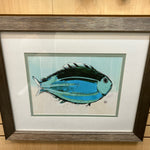 FRAMED & DOUBLE MATTED "SCHOOL OF FISH BLUE" 28W 24H