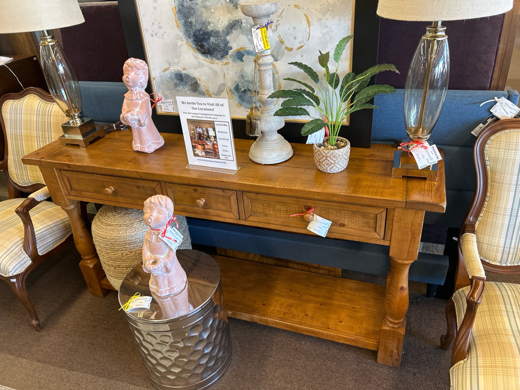 Rustic Console Table w/ 3 Drawers Across and a Lower Shelf - 70"W X 17"D X 33.5"H