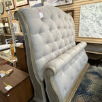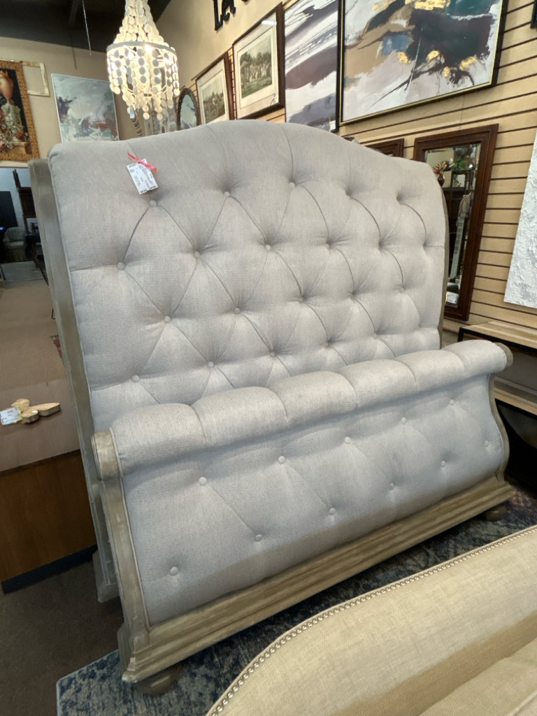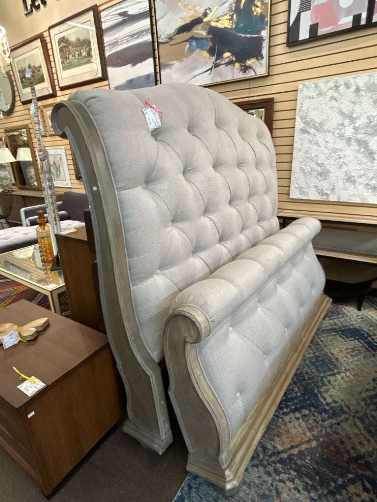 (AS IS -Wear) Taupe Button-Tufted Upholstered Queen Sleigh Bed (HB/FB/R/S)