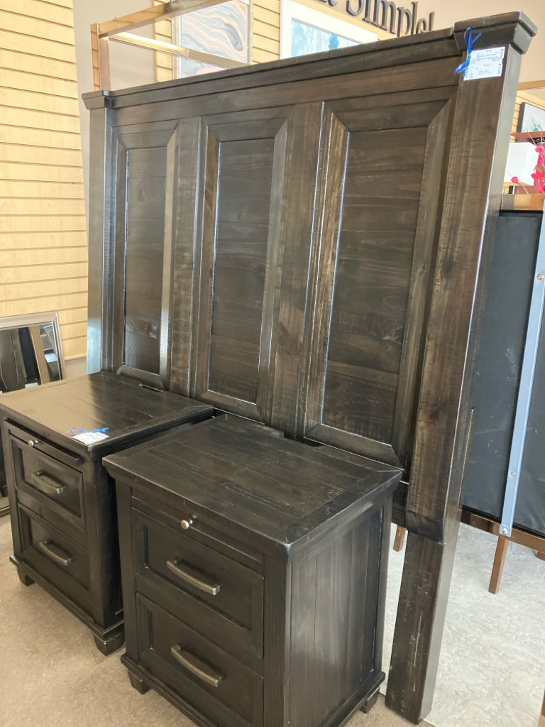 BLAIR SADDLE BROWN QUEEN PANEL HEADBOARD,FT,SIDERAILS,SLATS