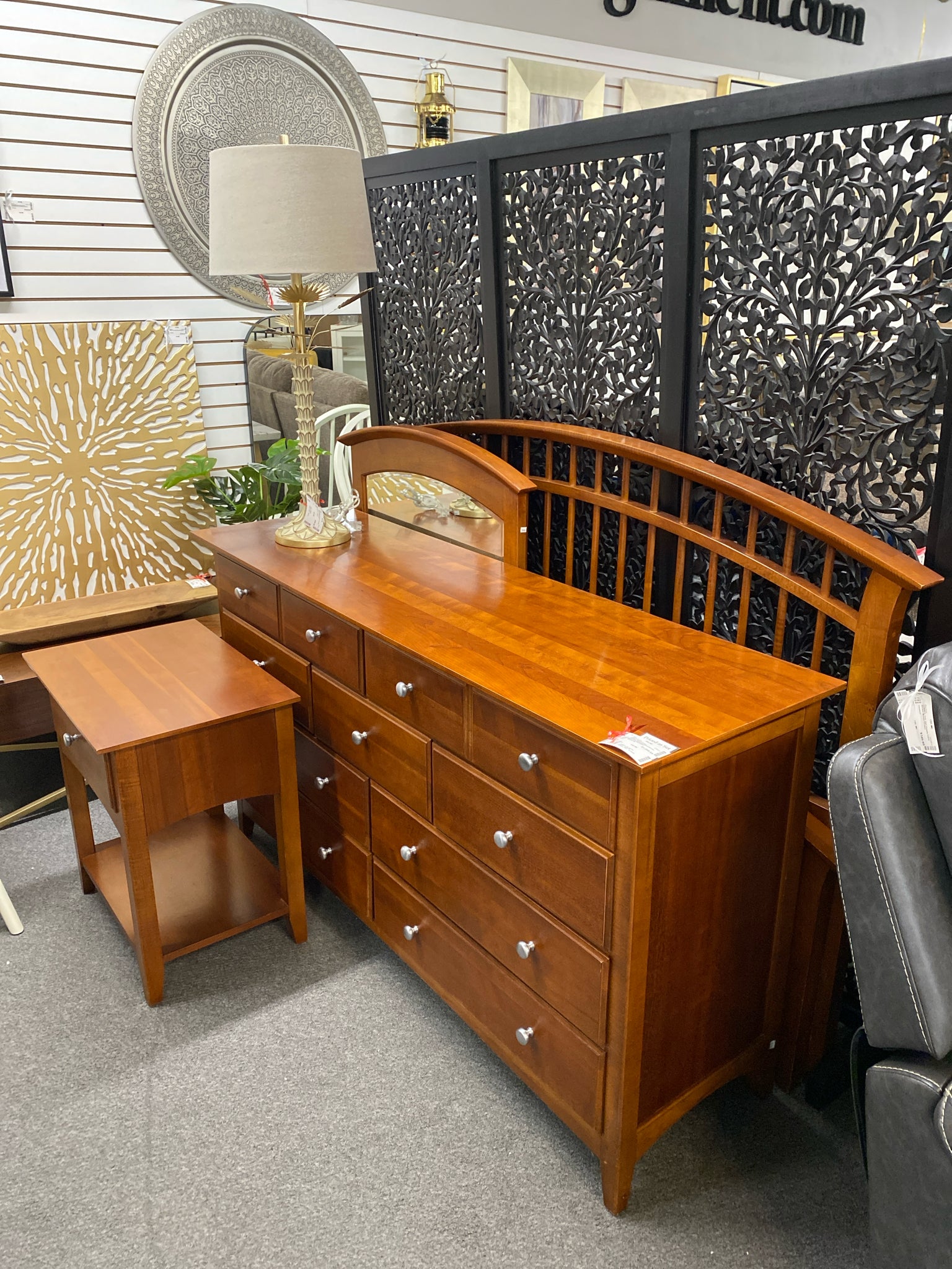 Bridges Queen Cherry Head/foot,(Rails and Slats),Dresser, Mirror, and Nightstand