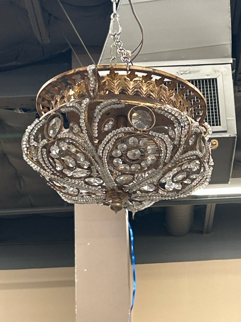 Vintage Crystal Beads & Gold Crown-Shaped Flush Mount Fixture
