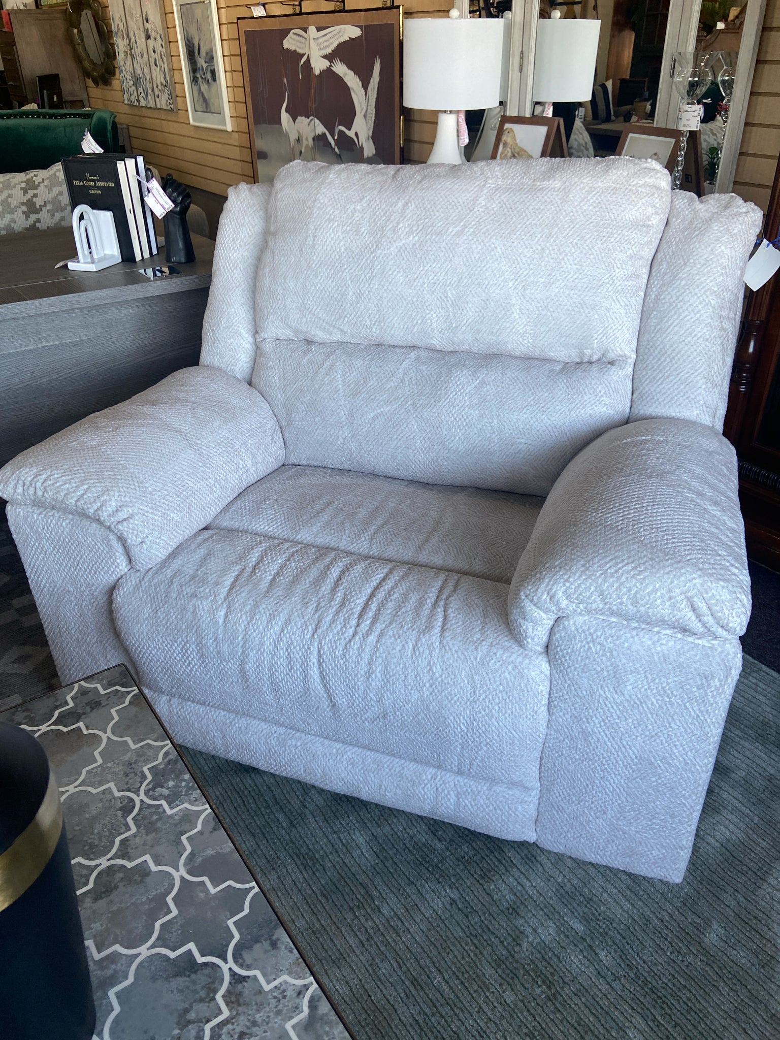 White soft over sized power recliner