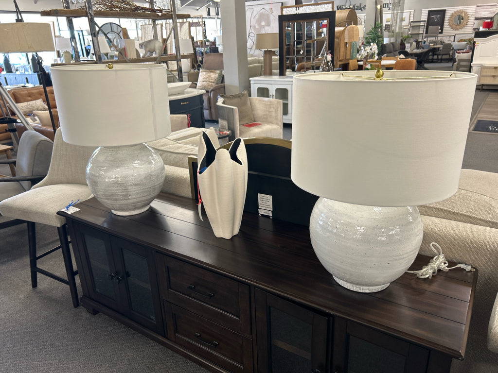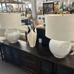 Pair LG White Speckled Glaze Deacon Ceramic Table Lamps
