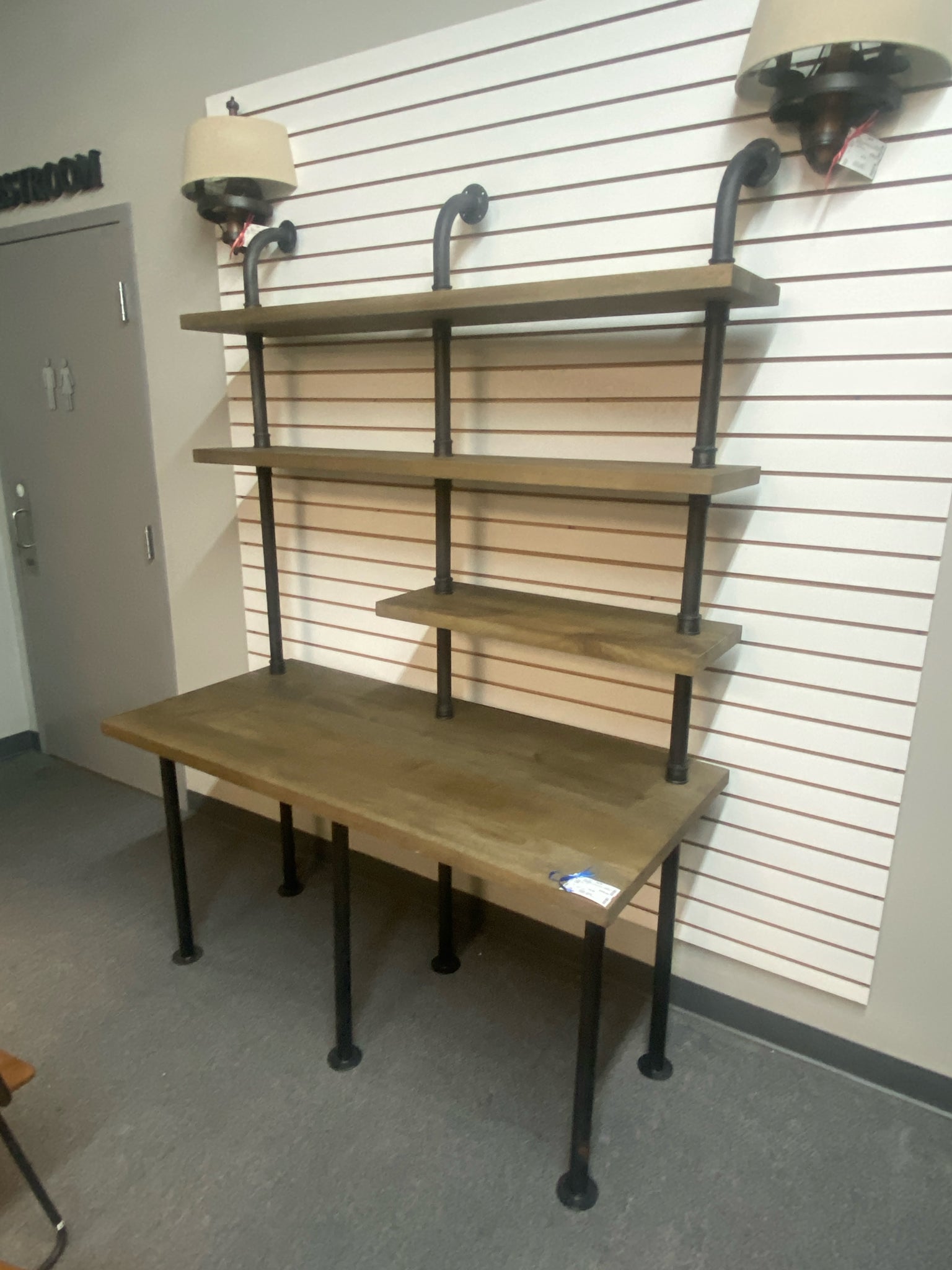 Industrial 57x26 Pipe Desk w Shelving