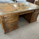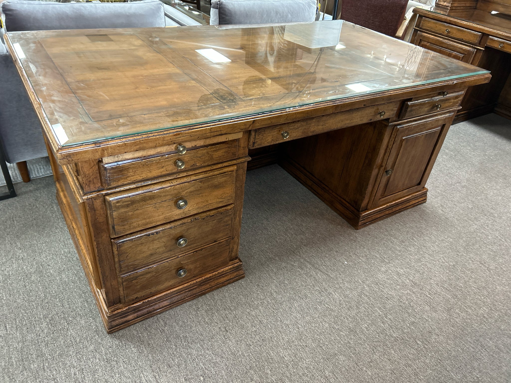Solid Wood Executive Desk with Custom Glass Top, File Drawers. 74"x41"