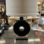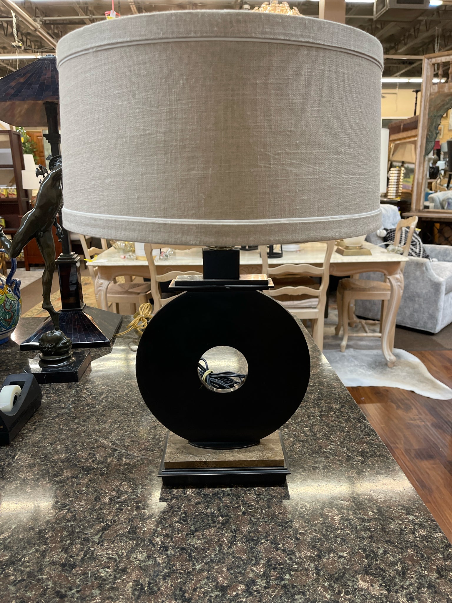 Bronze Metal & Marble Base w/Tan Linen & Dark Brown Shade 23"H