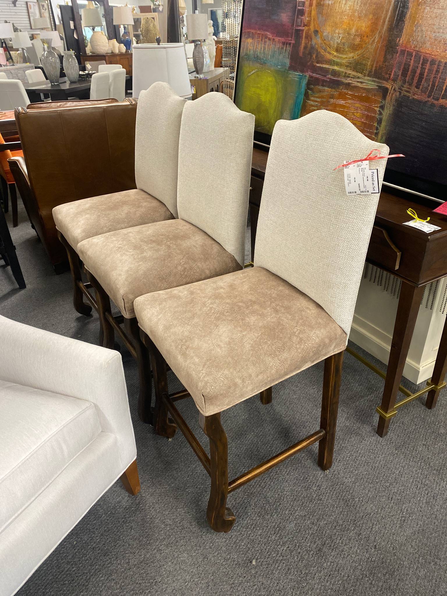 Set of 3 Cream Upholstered Counter Stools