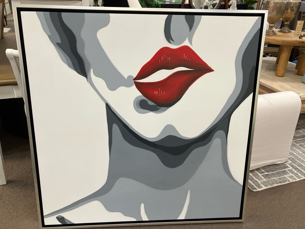 70392-SILVER FRAMED 47X47 HAND PAINTED LADY W/LIP BITE