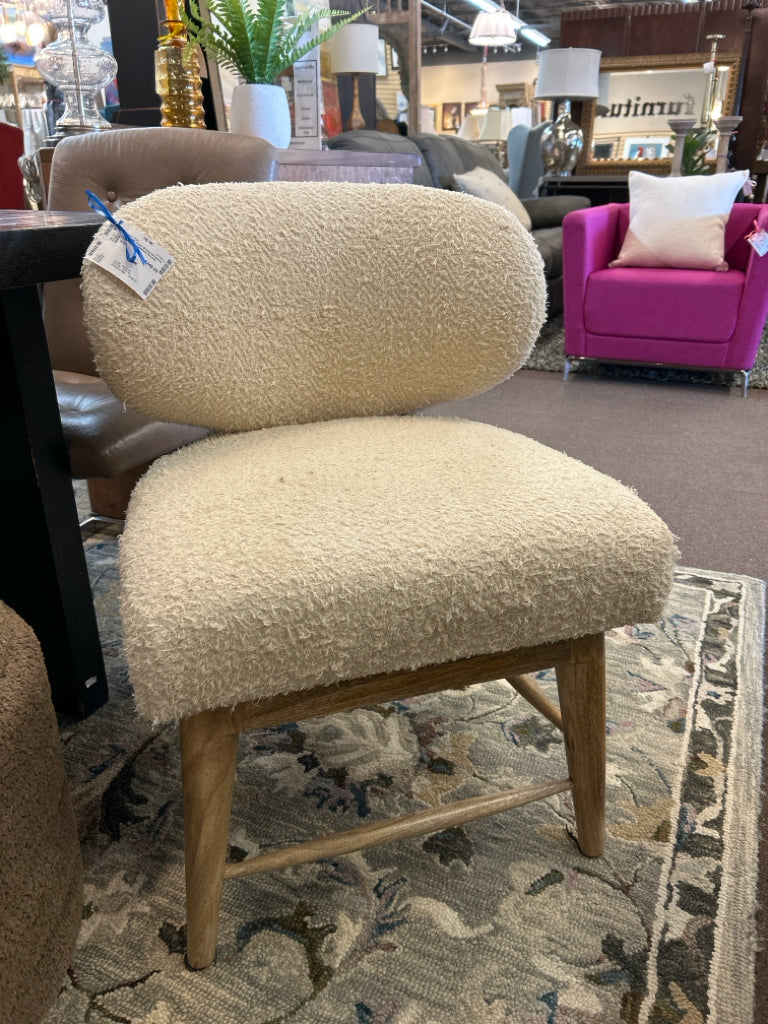 DGO566MC Cream Boucle Upholstrey & Mango Wood Nailhead Accents