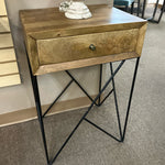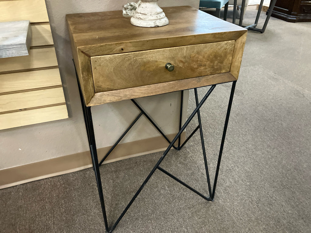 CVFNR721-MANGO WOOD HARRIS ACCENT TABLE W/1-DRAWER & BLACK IRON PIN LEGS 18W 14D 28H