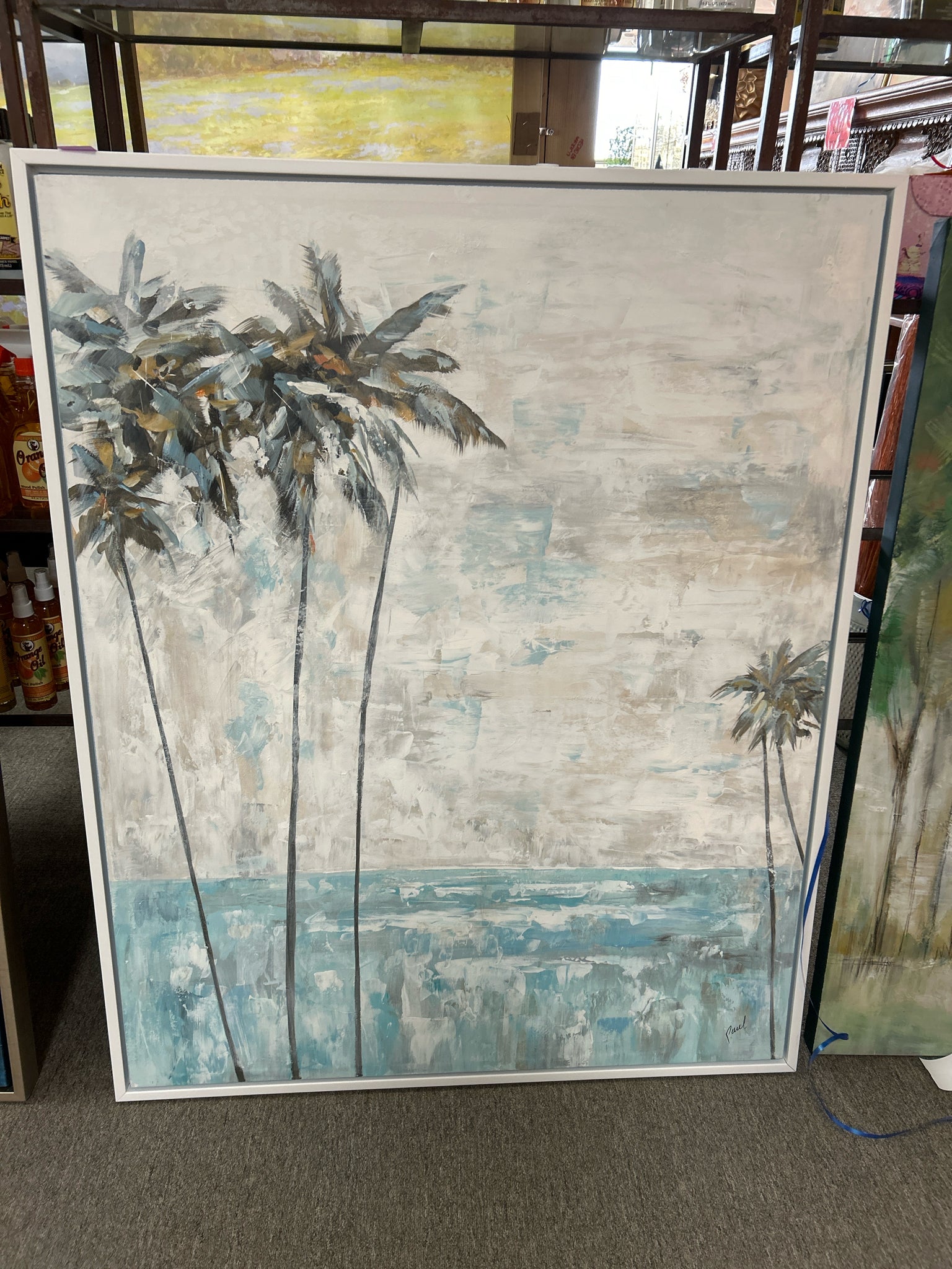 White Frame 6672 Blue,Green,White Palm Trees. 42x52"