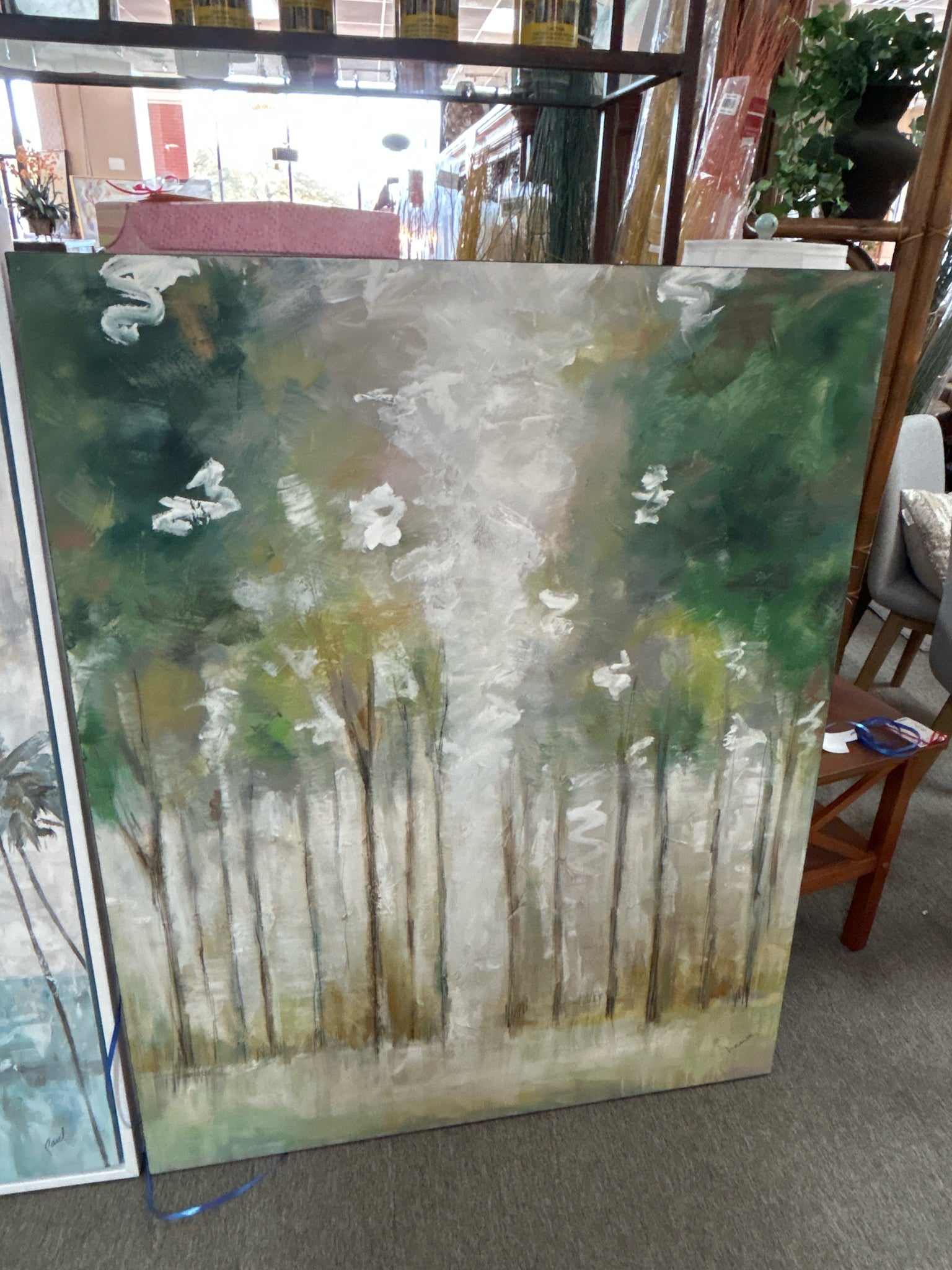 AS IS- Green,White, Tan Oak Grove with Laguna Birch. 40"x50". (No Frame)