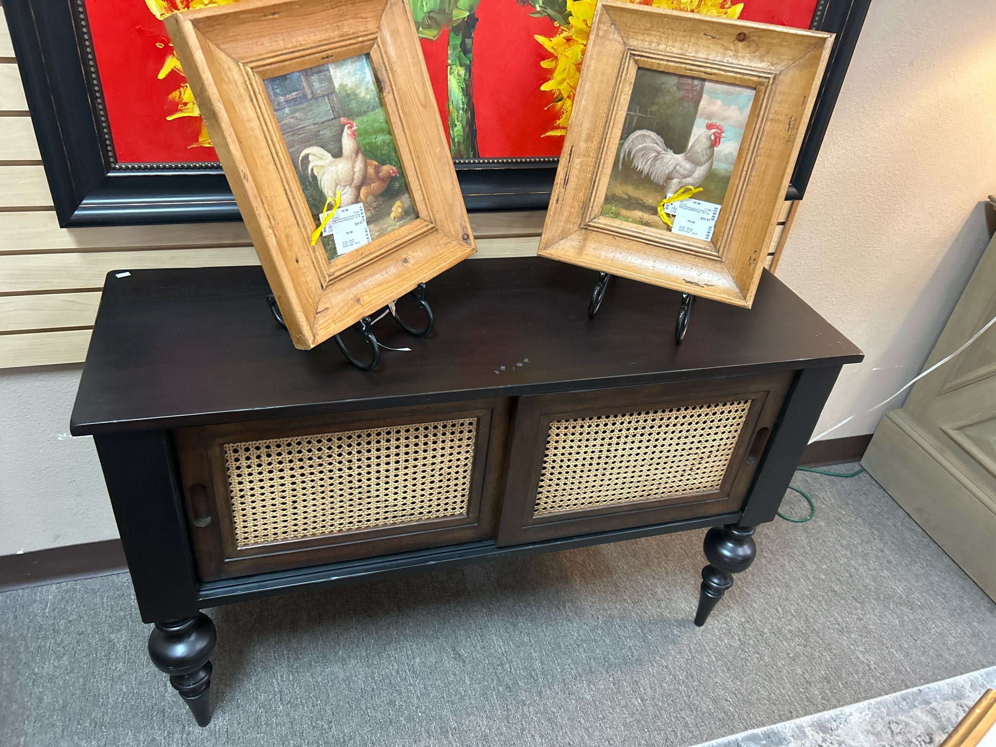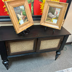 DCR1013 Black Console with 2 Rattan Front Sliding Doors. 48x16x32"