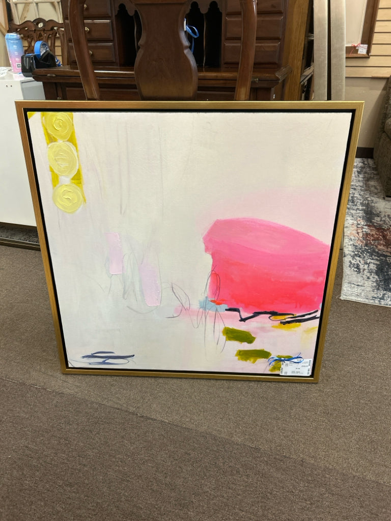 P98013 Pink Rhaposody 1 w/Lugana in Gold Frame 30" X 30"