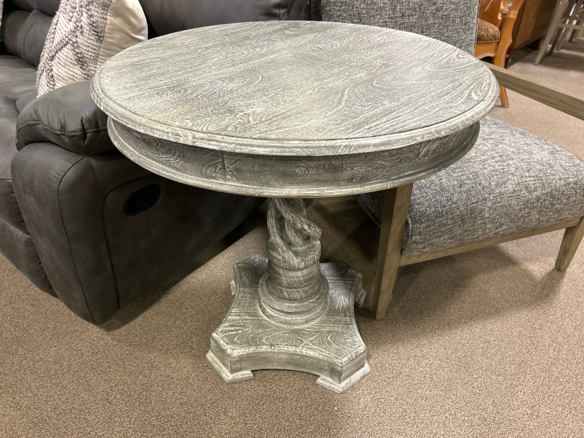Gray Round Wood Side Table W Pedestal 30"