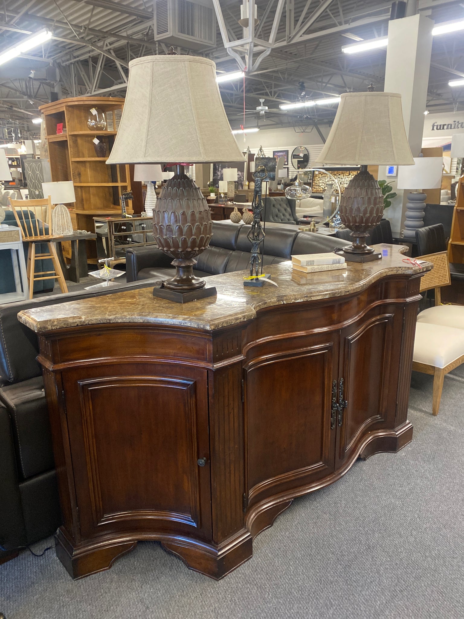 Mahogany 88" Granite Top Sideboard w 4 Custom Curved Doors