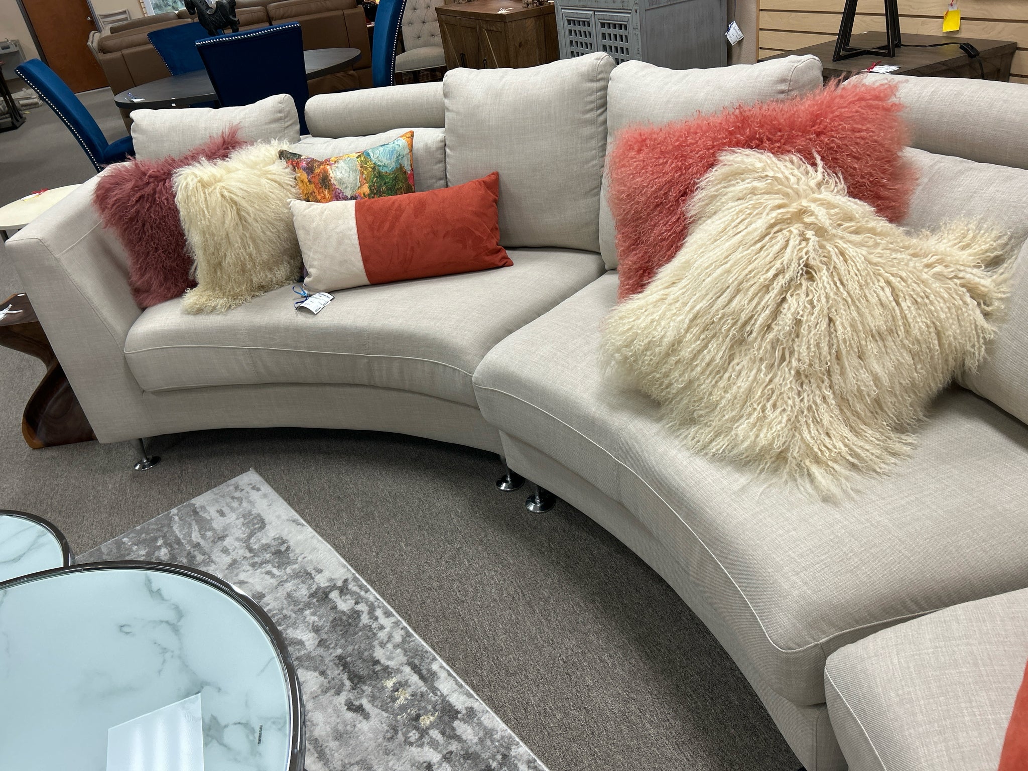 SET- Cream Fabric/Silver Legs 3 Section Sofa with Matching Ottoman