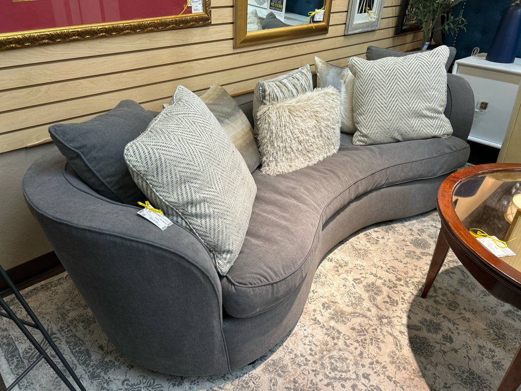 Medium Grey Curved Down-Filled Sofa W/ 8 Throw Pillows