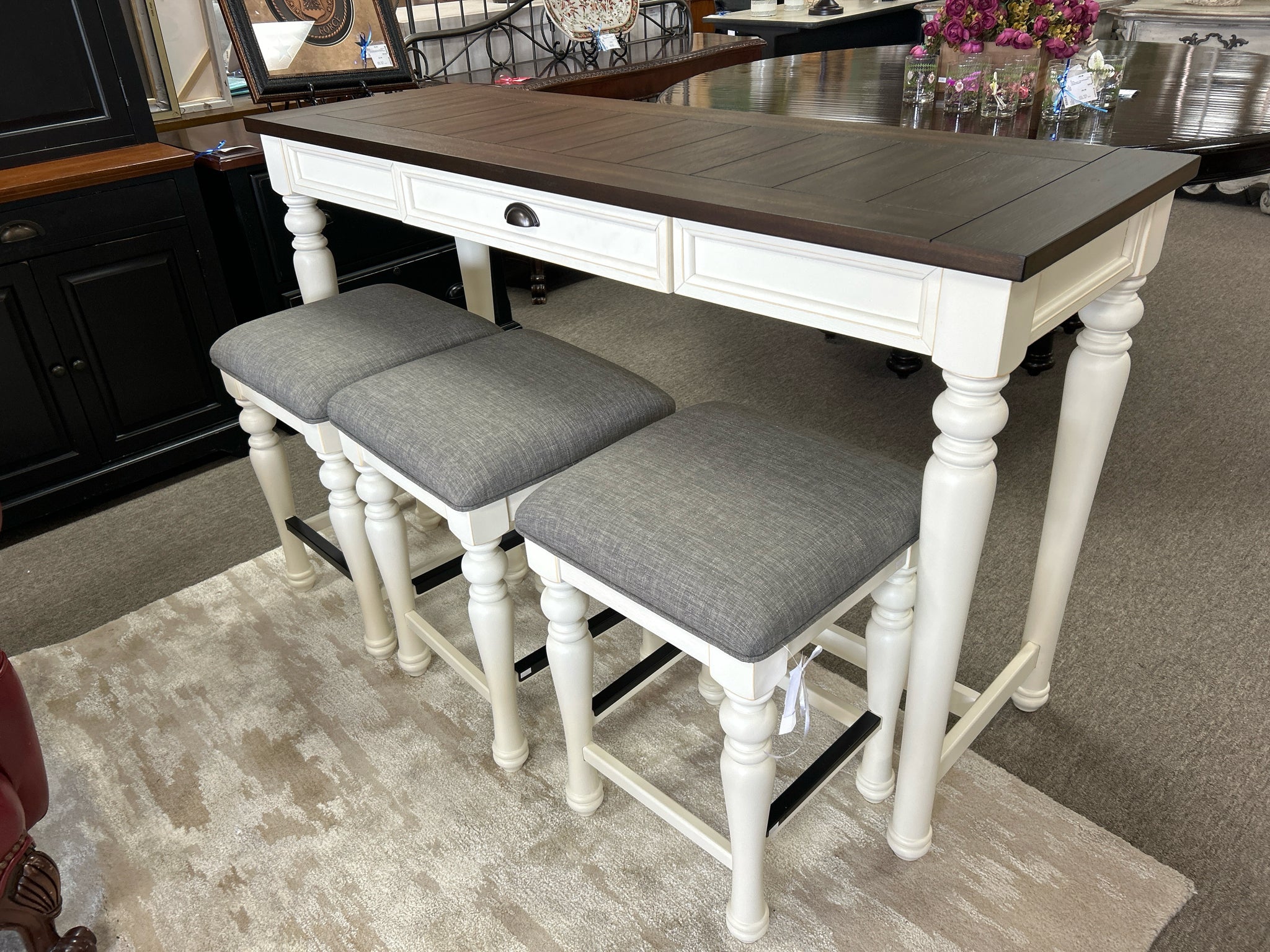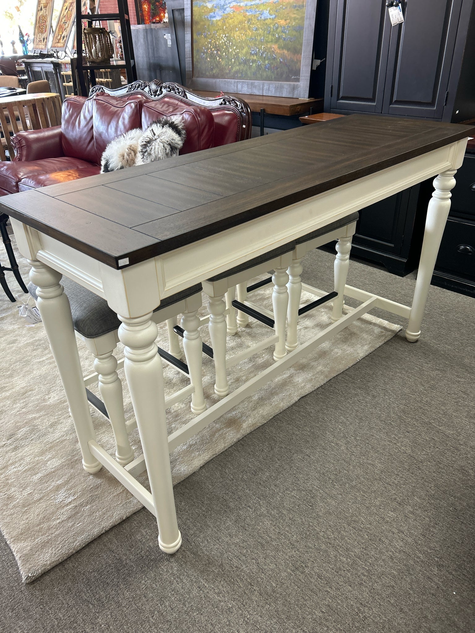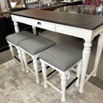 JA400SB 4 Piece SET 2-Tone Mocha and Ivory Wood Sofa Table with 3 Counter Stools