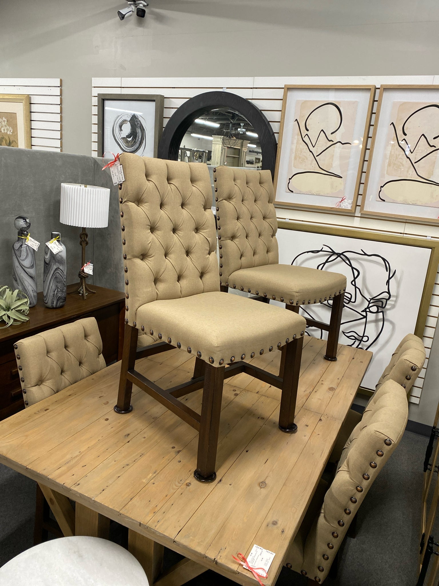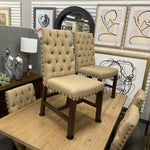 Set of 6 Tan Upholstered Dining Chairs With Nailhead Trim