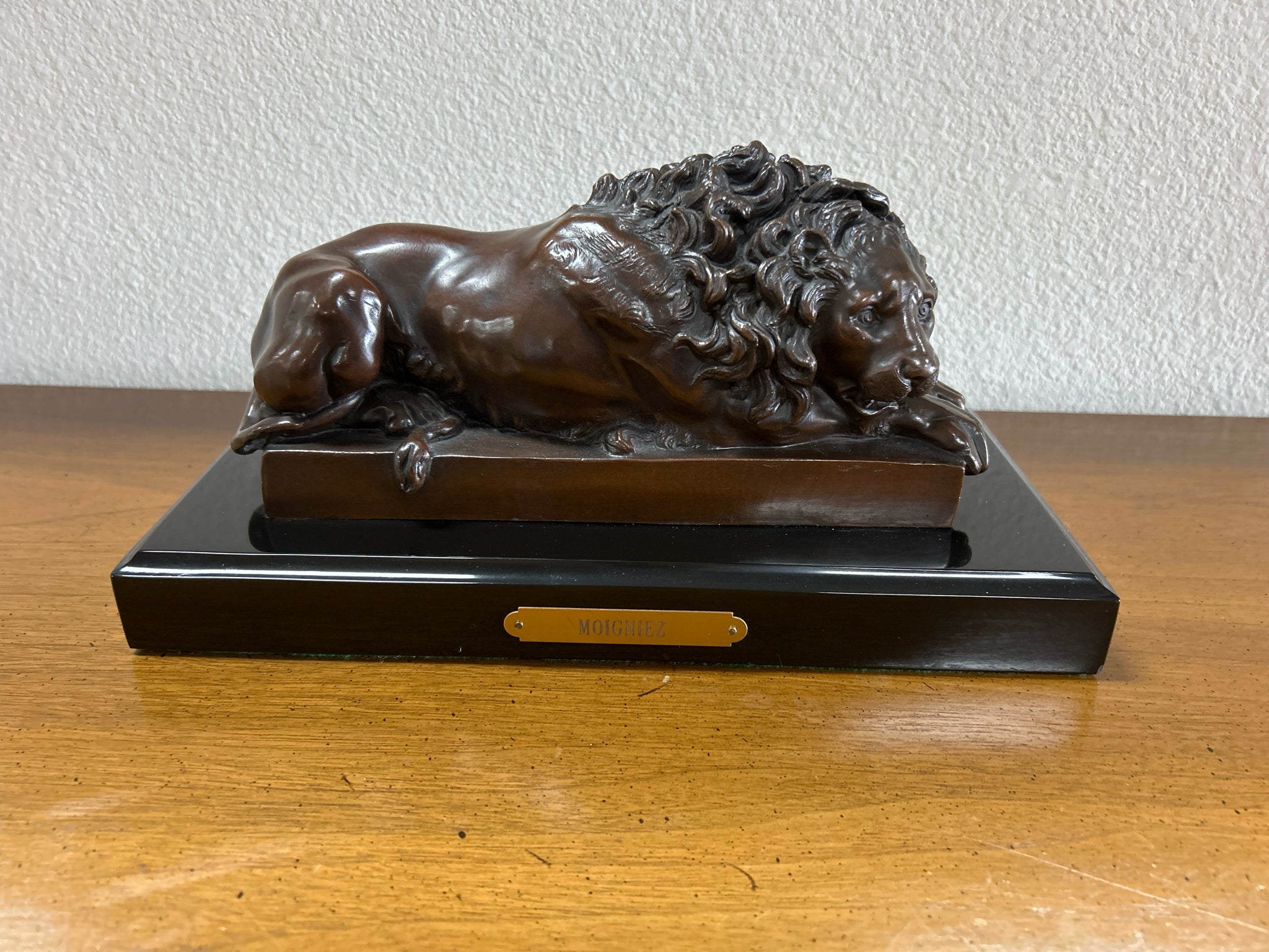 Moignez Sleeping Lion Statueon Black Base,12" x6"
