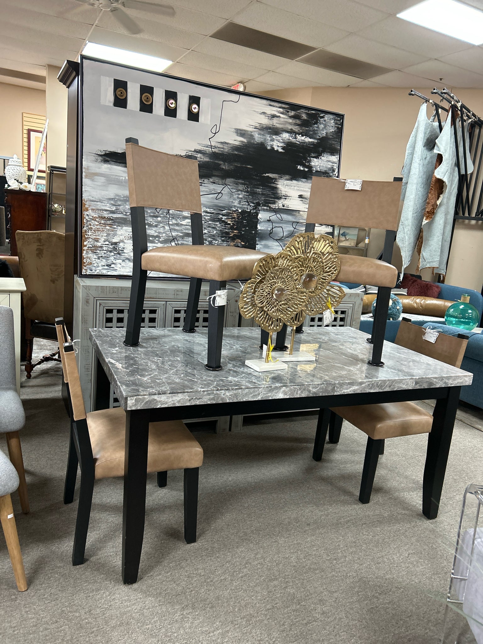 Grey Faux Marble Top Dining Table with Black Legs. 64x38"
