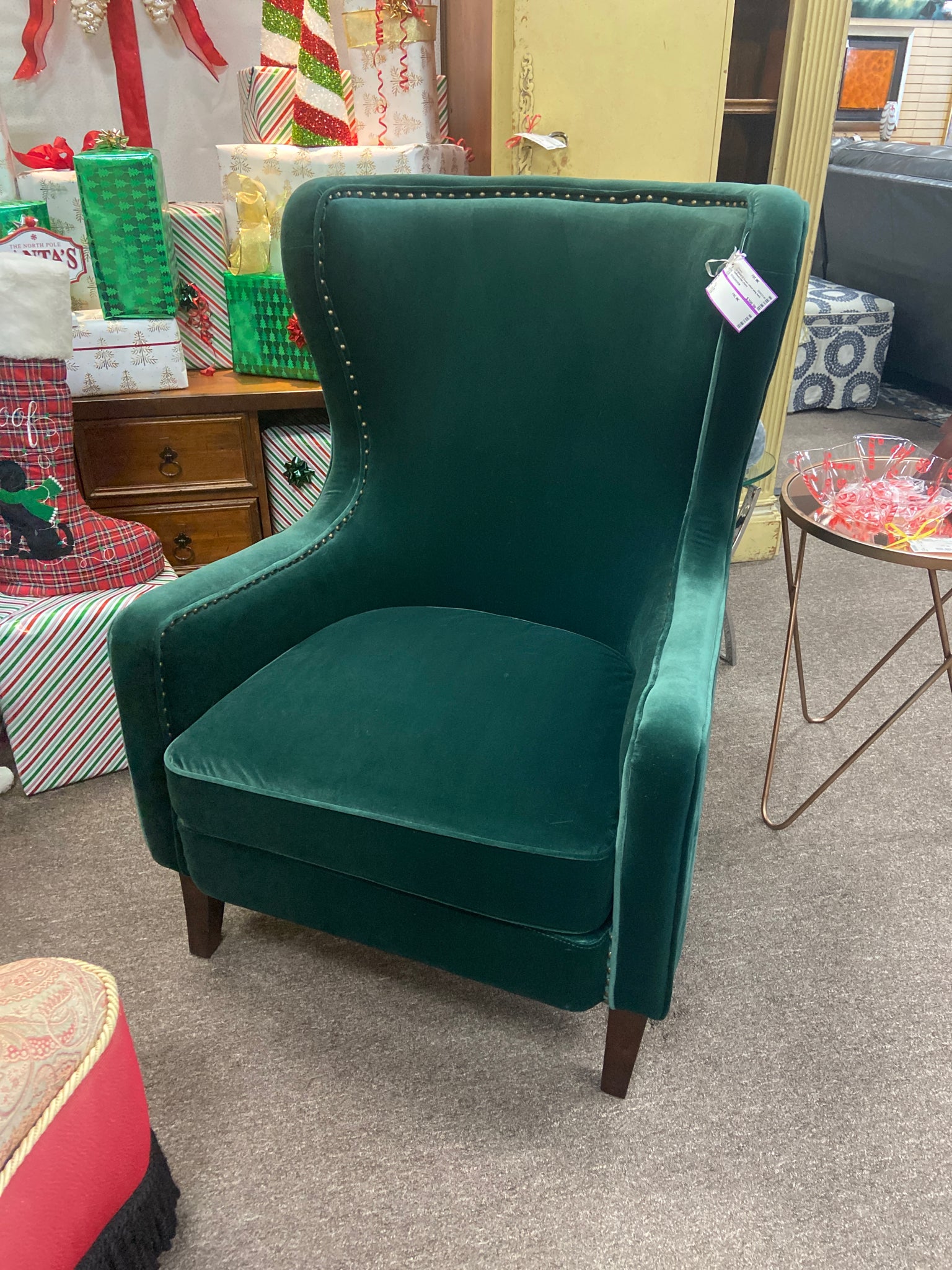 RC850ACG Green velvet wing back nailhead trim chairs