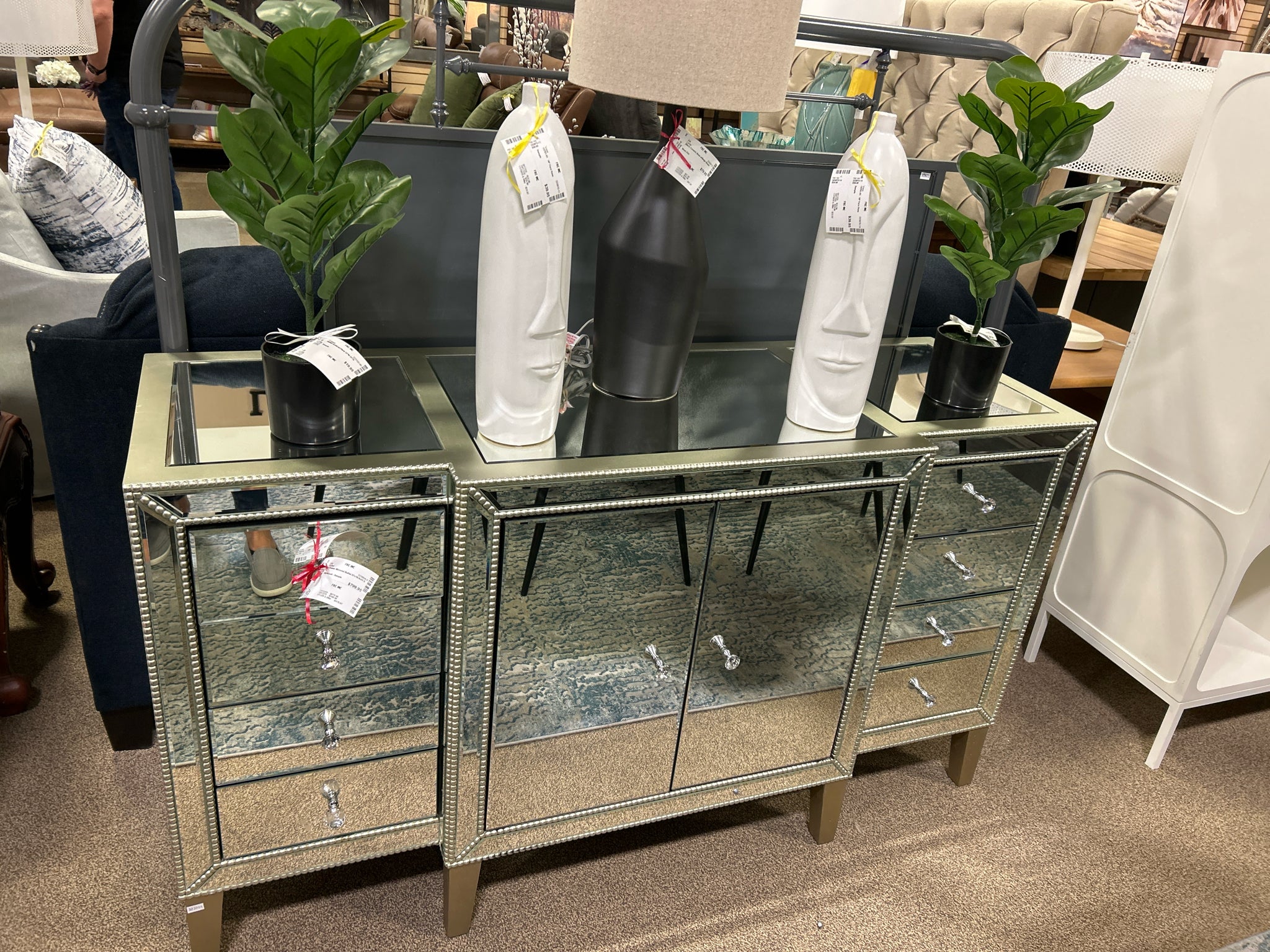 8 Drawer Mirrored Buffet 57x19.5x31.5