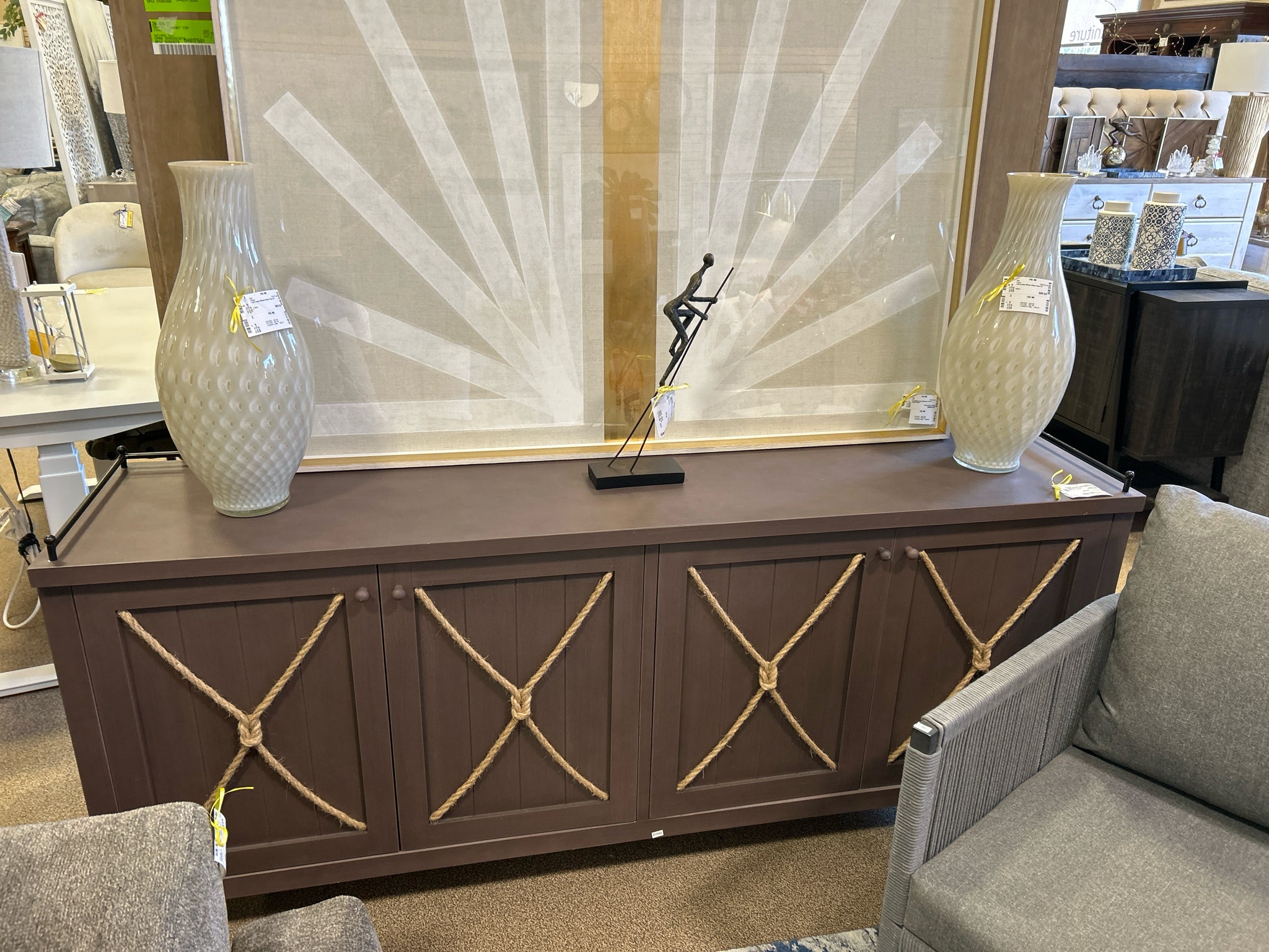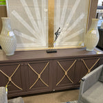 Dark Wood 4 Door Console With Rope & Black Metal Accent 72" x 32"