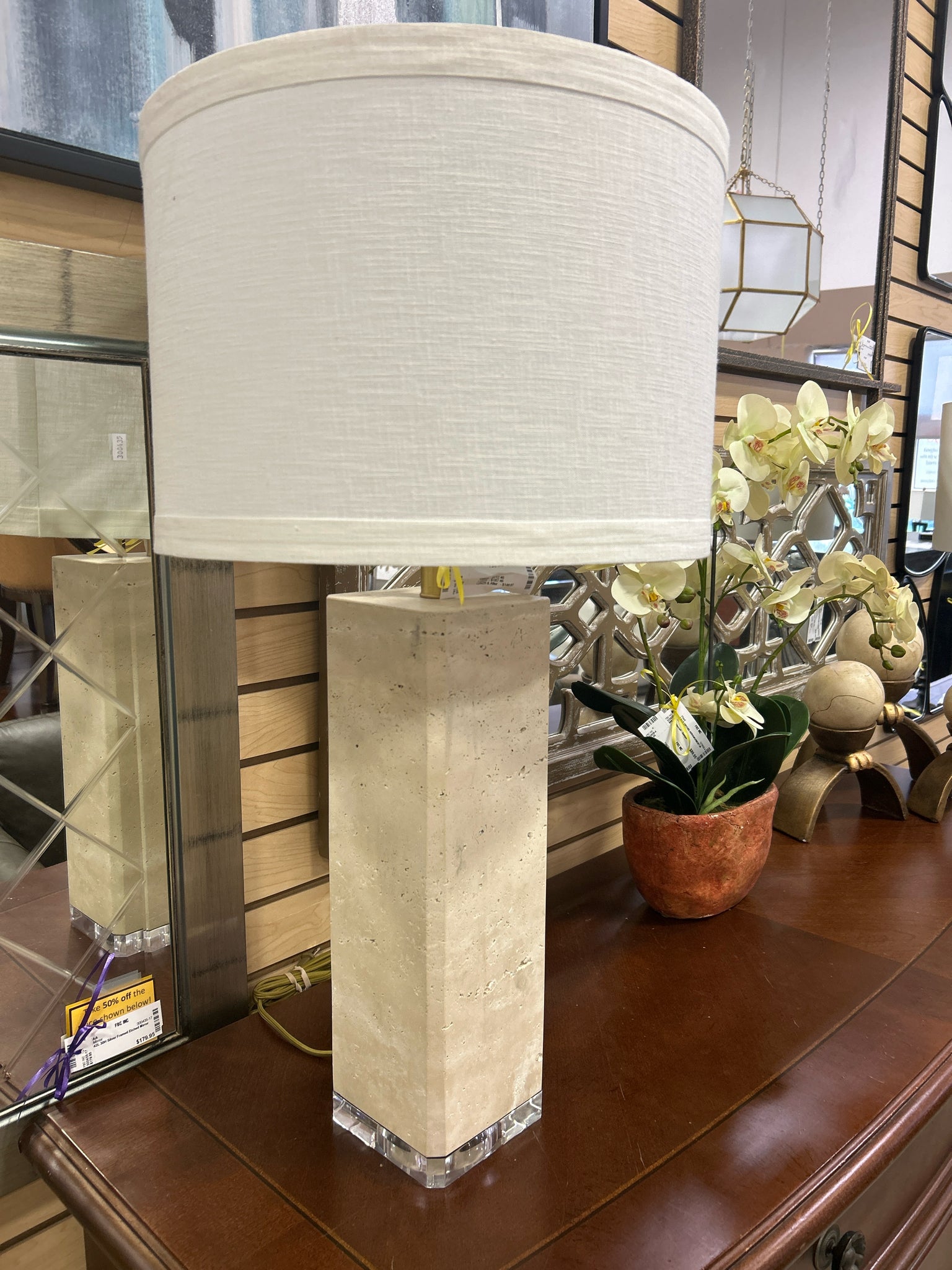 Tall Stone/Acrylic Squared Base With Cream Shade