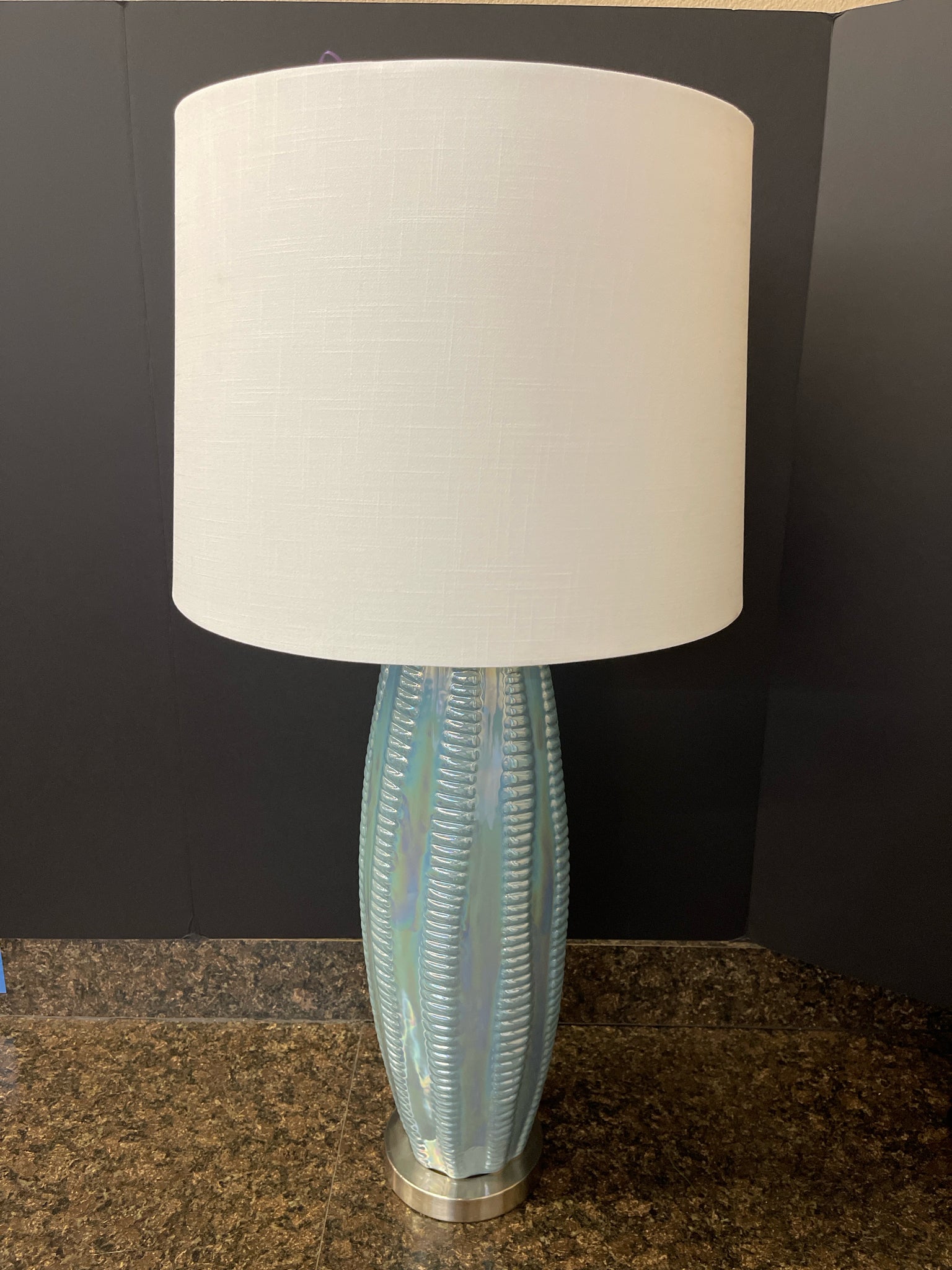 L333488 Luster Blue/ Iridescent Table Lamp w Brushed Nickel Accents
