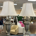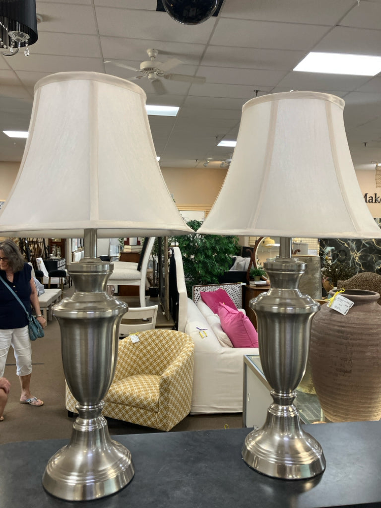 SET OF 2-BRUSHED SILVER TABLE LAMPS W/SHADES 30"H