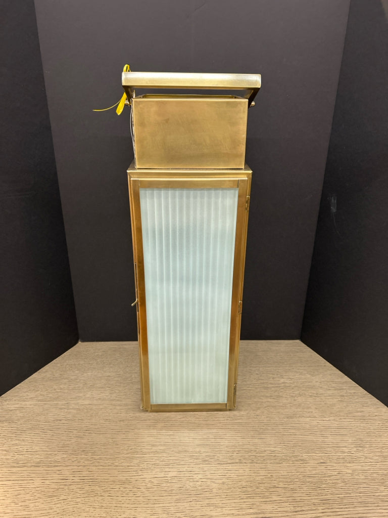 A151211 GOLD FINISH Metal Lantern w/ Ribbed Milk Glass 25"H 8"W