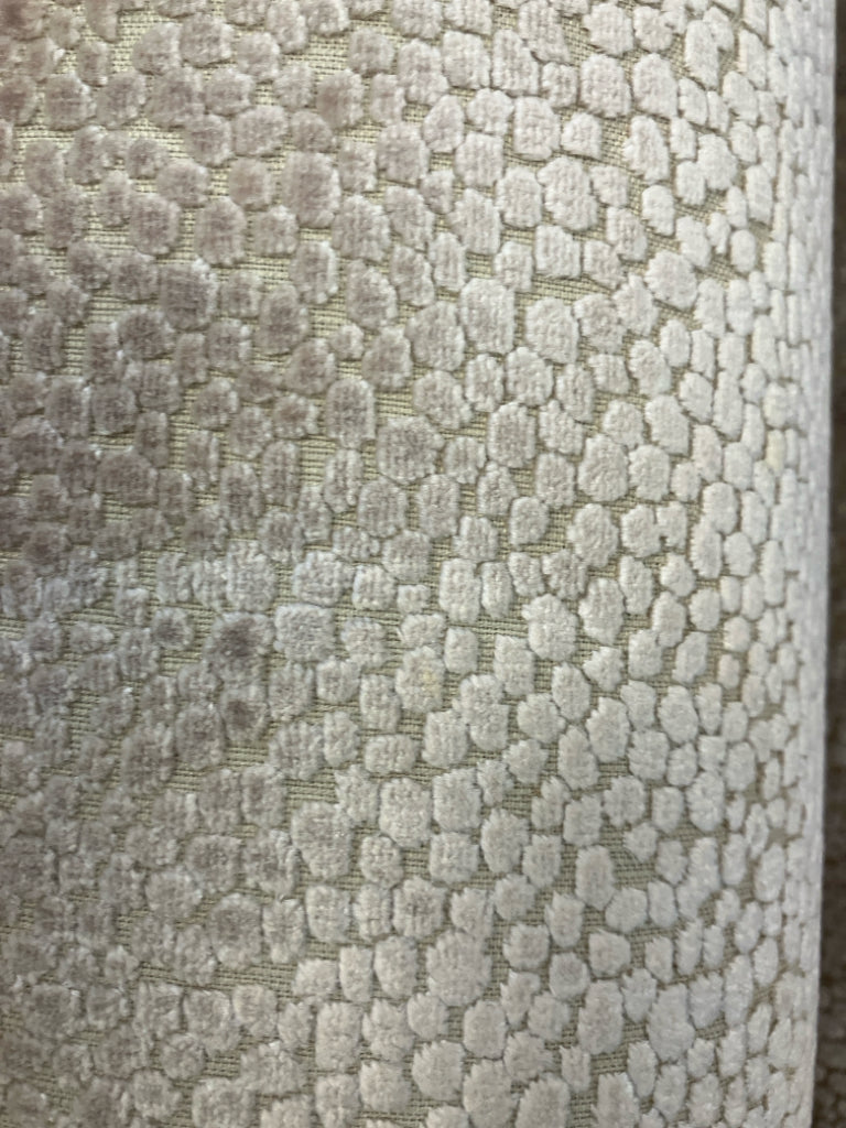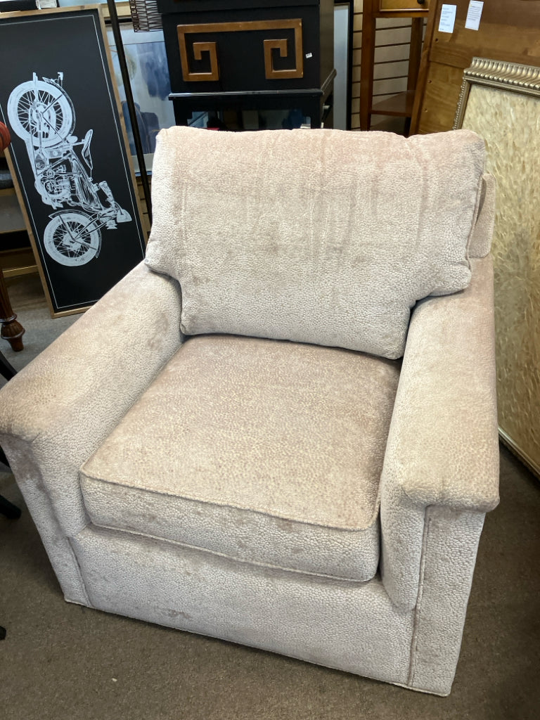 JAMES ANTONY-UPHOLSTERED CHAMPAGNE DOT'S SHARK FABRIC SWIVEL CHAIR 38W 38D 38H (NEW)