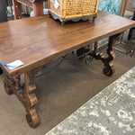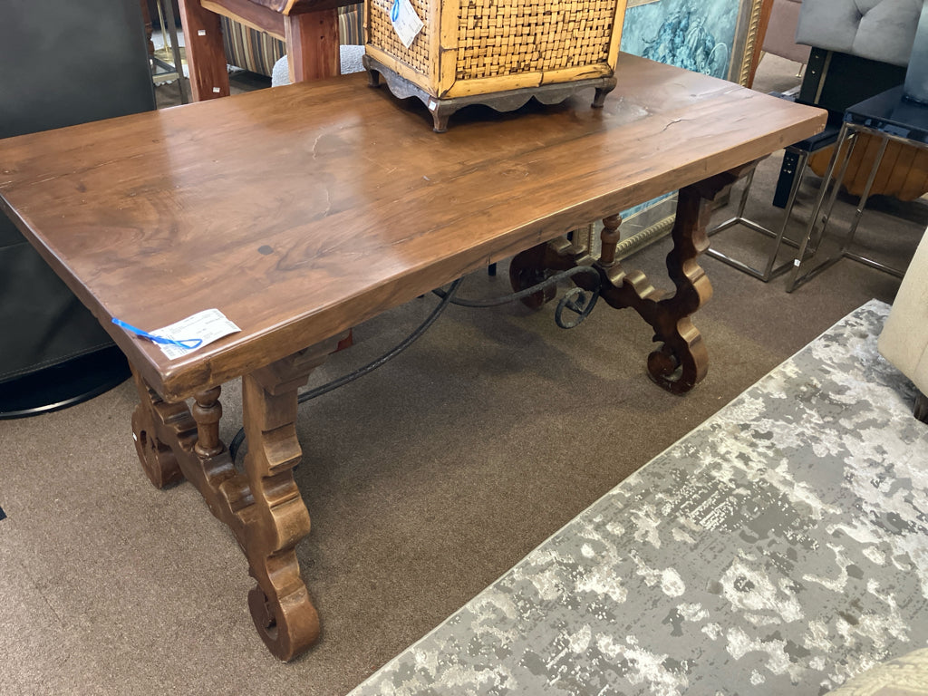 Walnut Plank Trestle Table w/ Metal Accent