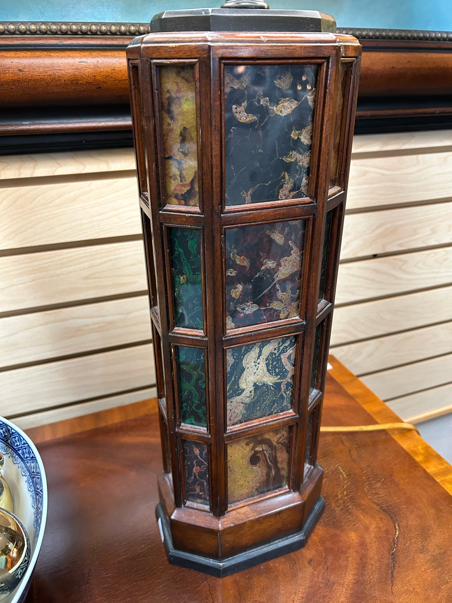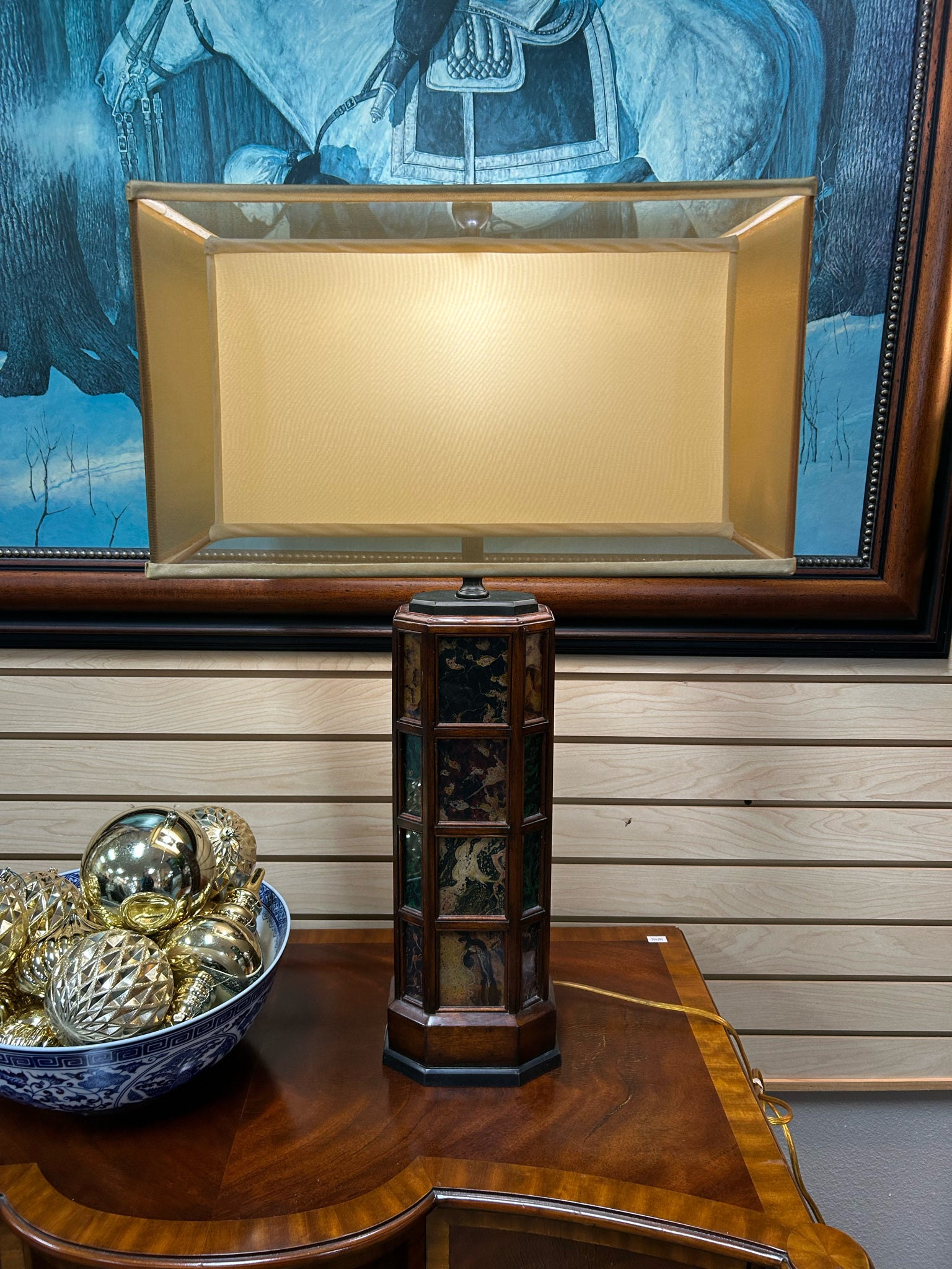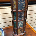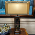 Wood Base/Stained Acrylic Table Lamp with Rectangle Double Silk Shade