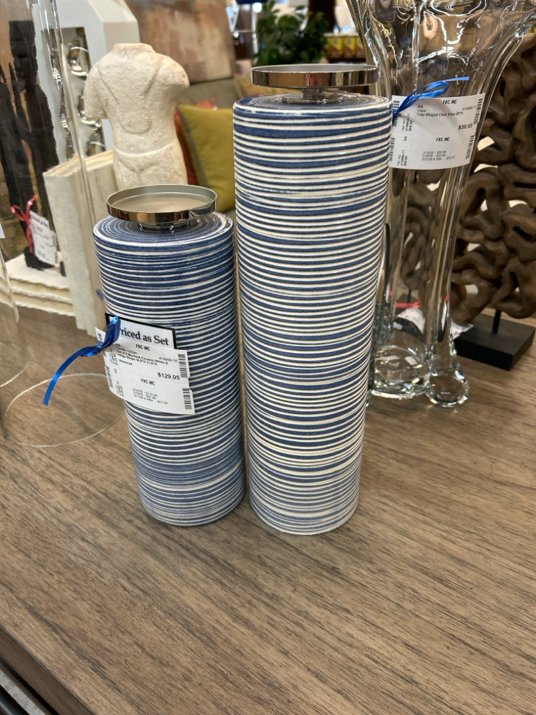 Set of 2 Montauk Ceramic White & Indigo Stripe 14.5"H 11.5"H