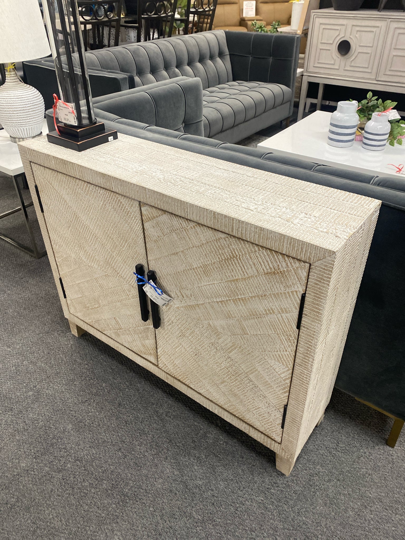 40" Whitewashed Cabinet with 2 Doors and Black Handles