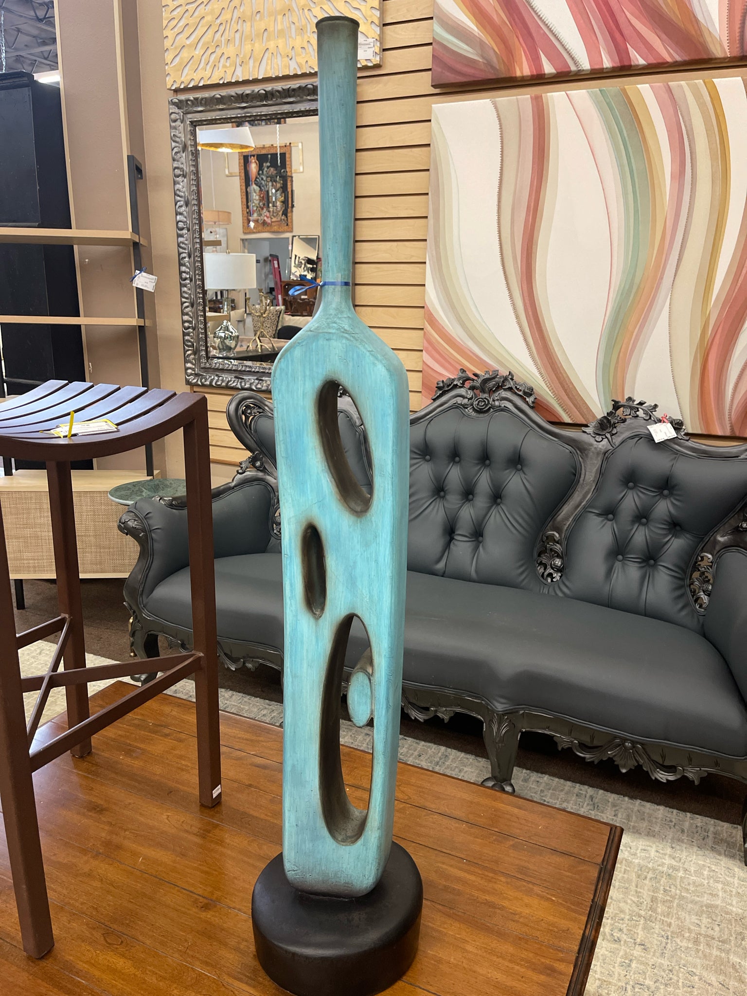 Abstract Teal Sculptural Floor Vase w/Cutouts Matte Finish 48"H