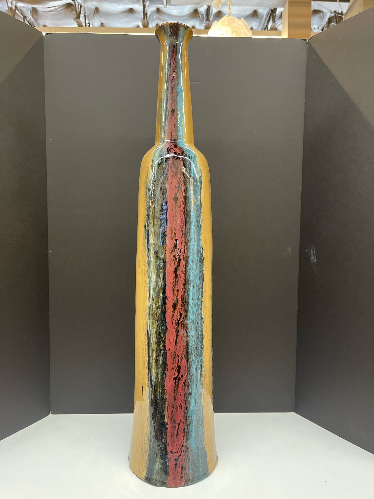 Ceramic Multicolor Striped Glazed Bottle Shaped 33"H 6.5"W